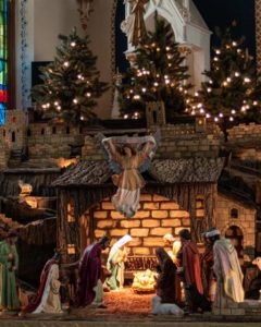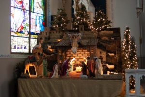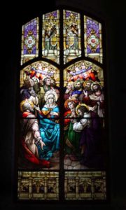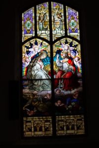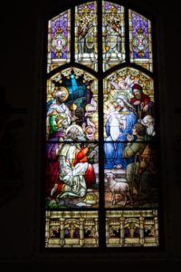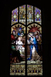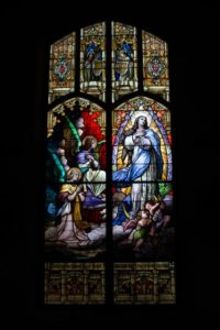 Many of the church’s interior furnishings were donated by organizations and individual families. The pews, statues, stations of the cross baptismal font, Christmas crib, and many of the fixtures were installed at the time of the completion of the church building. The heating system and pipe organ came a year later. Among the outstanding features of the church are the stained glass windows which were added in 1916. the names of the contributors for these windows are inscribed at the bottom of each window. These remarkable windows were handcrafted by an artist, who worked for .07 an hour, at the Emil Frei studios in Munich, Germany or St. Louis, Missouri. They were installed by the Emil Frei craftsmen from St. Louis.
