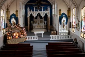 Unlike many churches in the Diocese of Dodge City, the Immaculate Heart of Mary Church was not stripped of its statuary and ornamentation after the Second Vatical Council in 1963. It was decided that it would be wrong to remove the high altar canopy side altars and Statues from the monument that our ancestors had built.