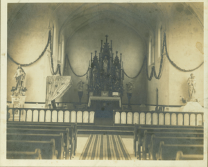 In 1918, the high altar with its canopy, and the two side altars were installed. The high altar from the second church had been used until this time It was given to St. Nicholas Church in Kinsley, Ks.